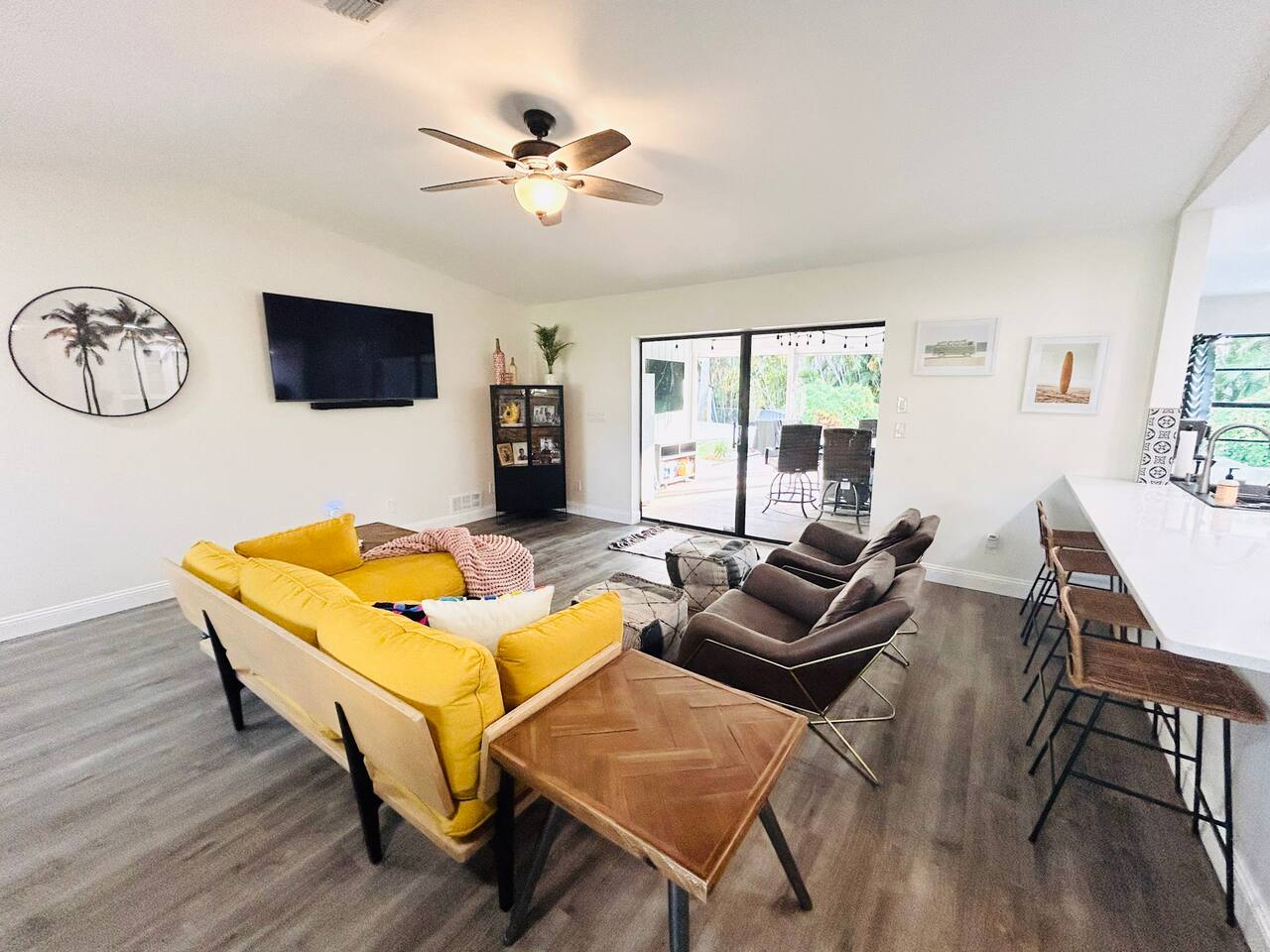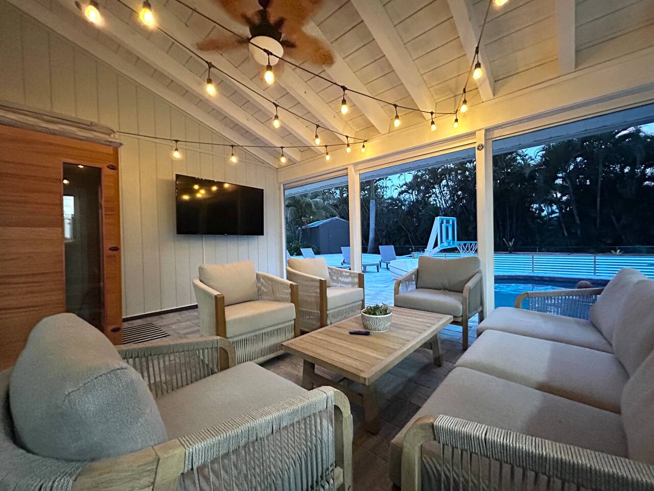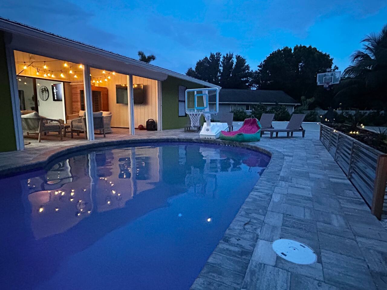 Location is everything! Situated just minutes from the beaches of Sanibel and Ft Myers, you'll appreciate the convenience of many nearby restaurants and local bars. The kids won’t be bored with our 9 hole mini golf course, pickleball, basketball, and huge heated pool and hot tub! This serene neighborhood is ideal for your next family getaway. The garage is complete with AC, TV and a queen sleeper sofa, perfect for everyone to have their own space! New to the rental market and will book fast!